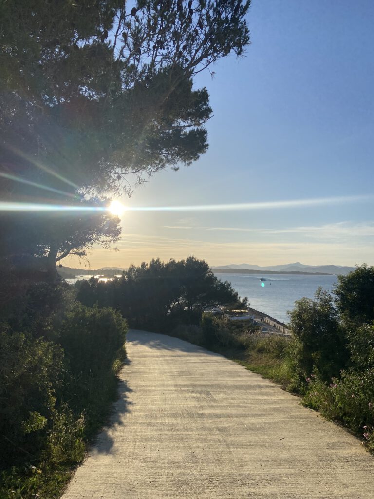 A must-see on the French coast of Provence are the Iles d’Hyeres, especially the Ile de Porquerolles. It’s a different world. When the tourist ferries have returned the daytrippers to the mainland around 7 p.m., the small town of Porquerolle belongs to its few residents and sailors. In the harbour, we moor at a buoy, which is much more relaxing than at the visitor’s pier. In the evening, eating at one of the many restaurants on the edge of the small village square and drinking the island’s rosé wine… pure France!