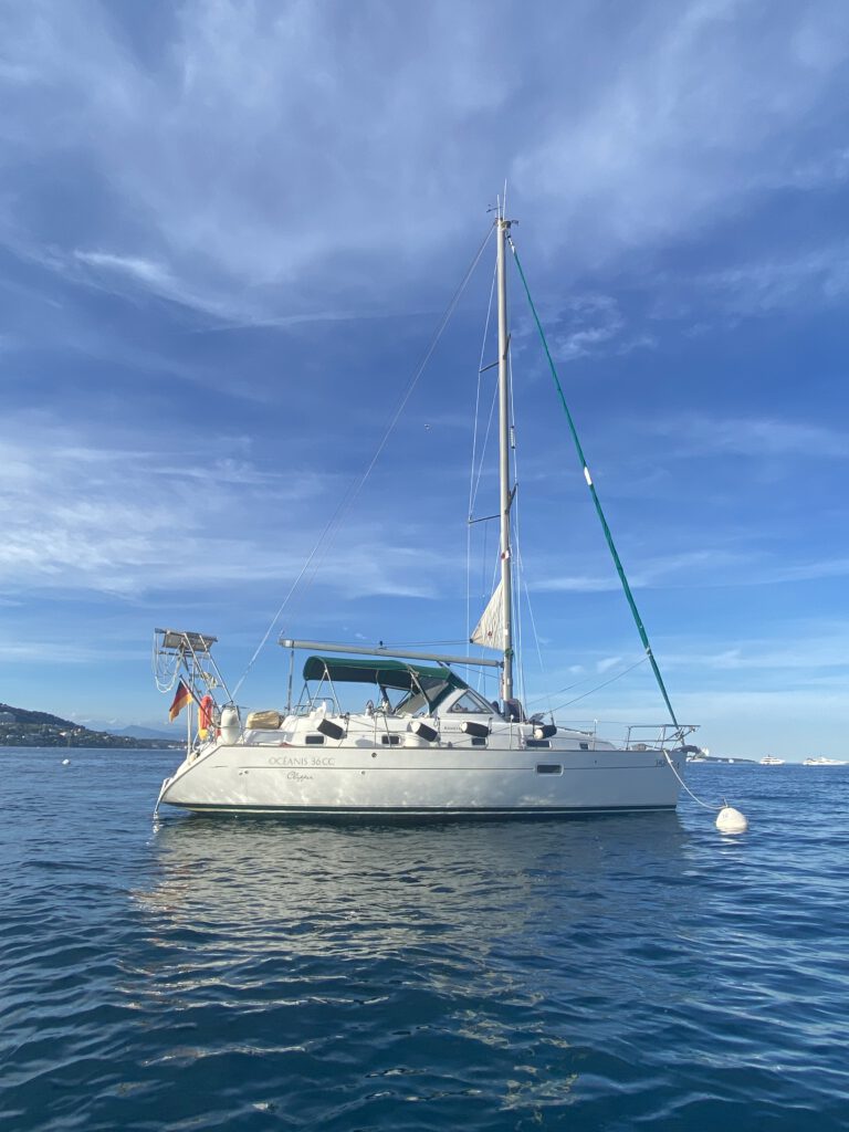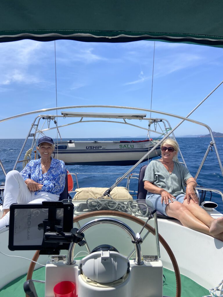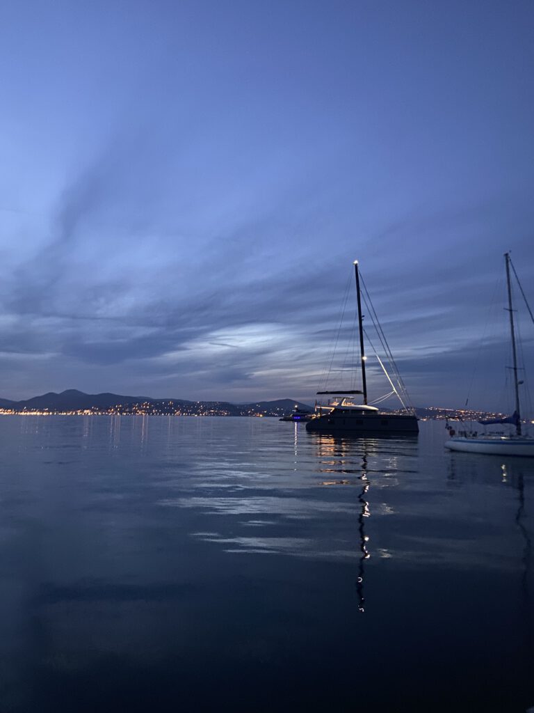 From the Bay of Toulon, we’re no longer in the Mistral’s range. This means much less wind. Usually just a thermal breeze that starts around 11 a.m. and blows at a moderate 3-4 Bft until the evening. But there are also days with no wind at all, when SALU’s engine helps us reach our daily destination.